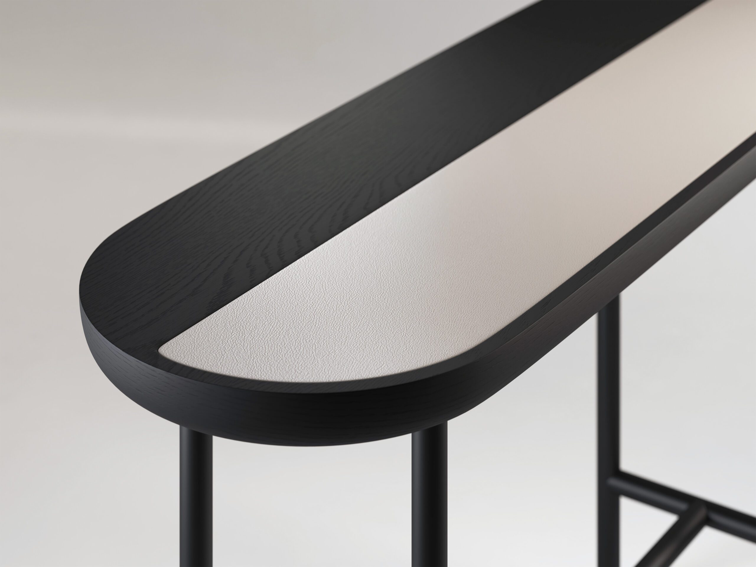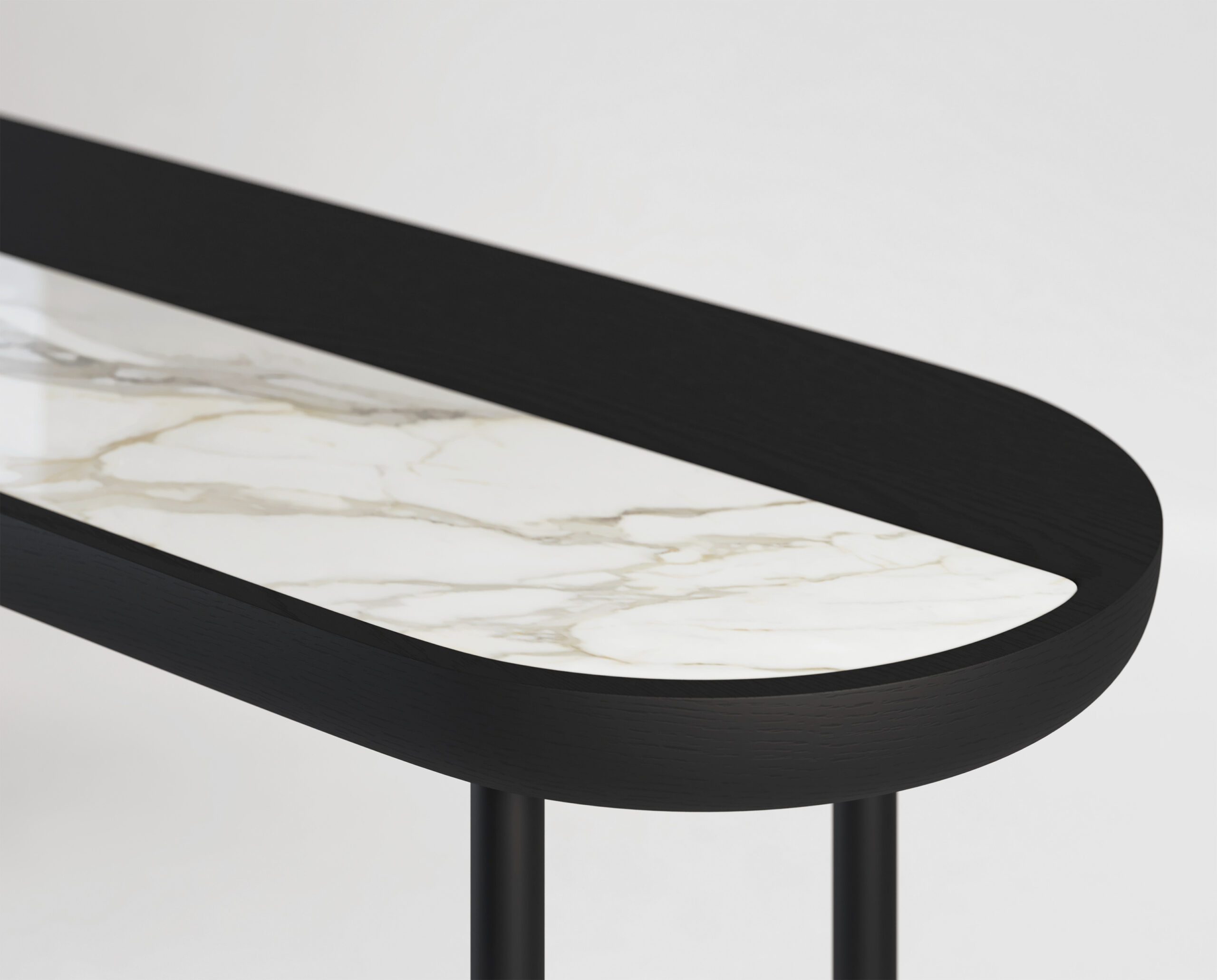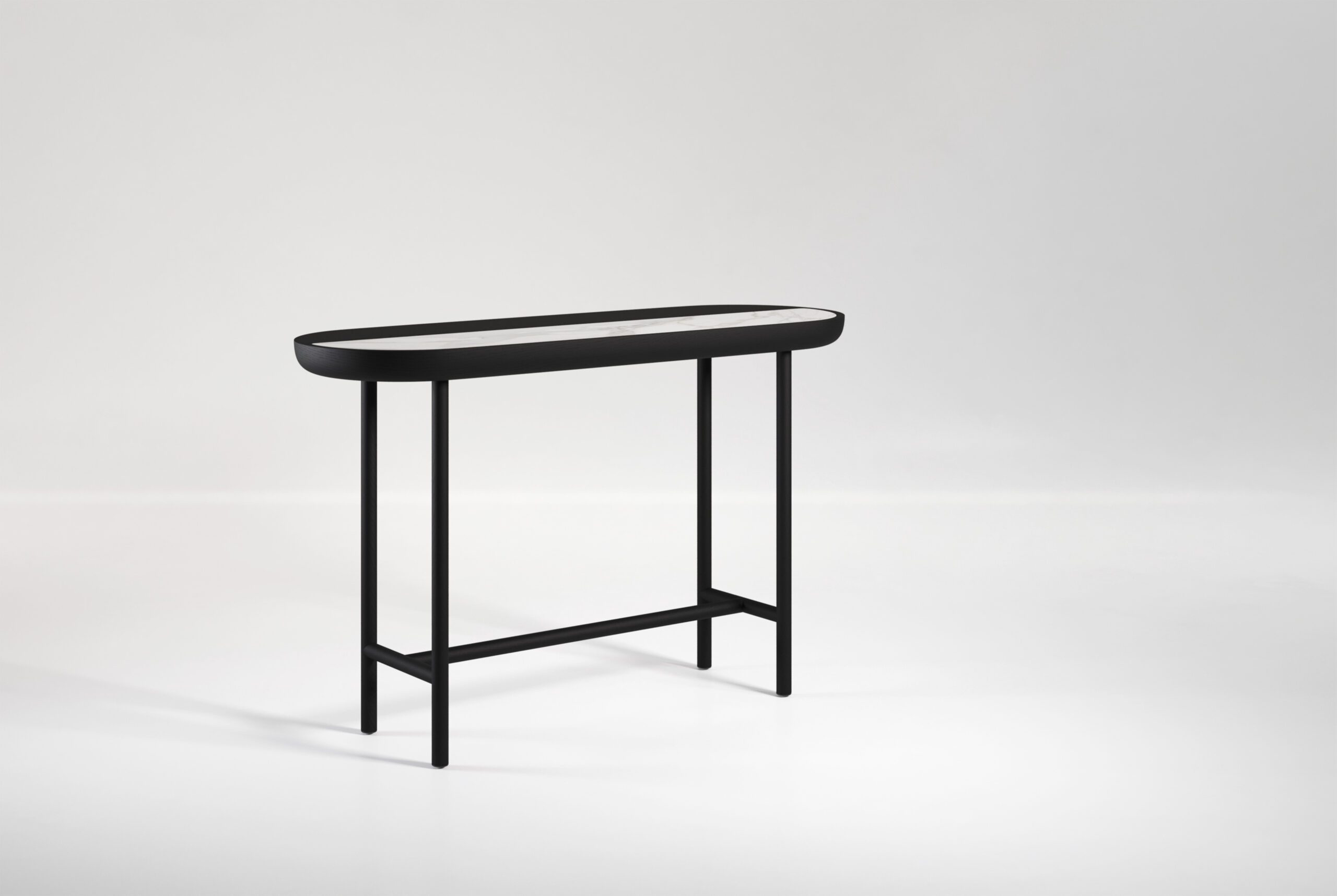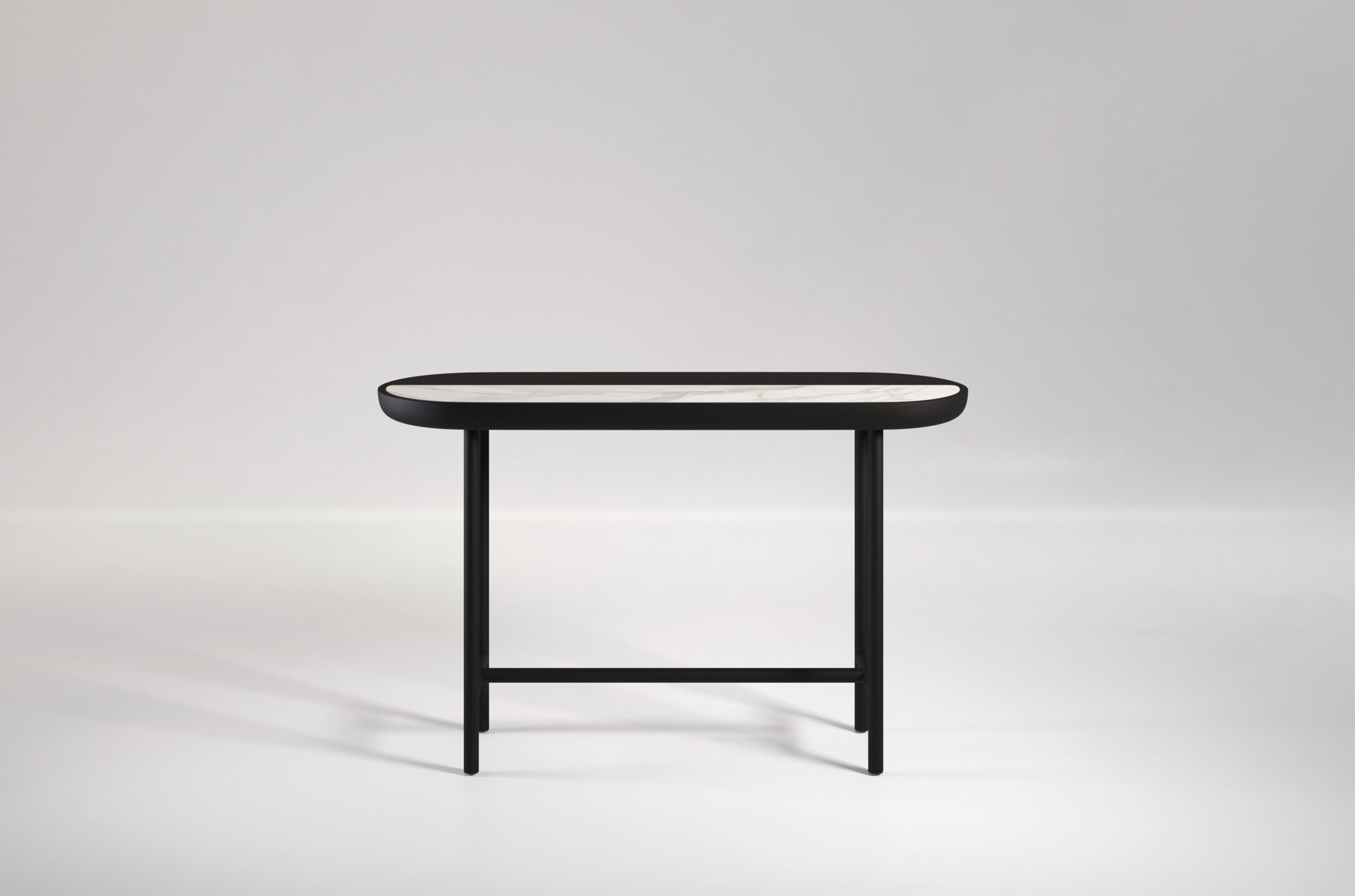 Apollo console is a minimal piece which draws inspiration from yin and yang and the balance of everything. The Apollo console consists of a wooden top with inlayed marble or upholstery. Characterized by its soft curves and round shapes, Apollo is available in a number of different wood, stone and upholstery options.