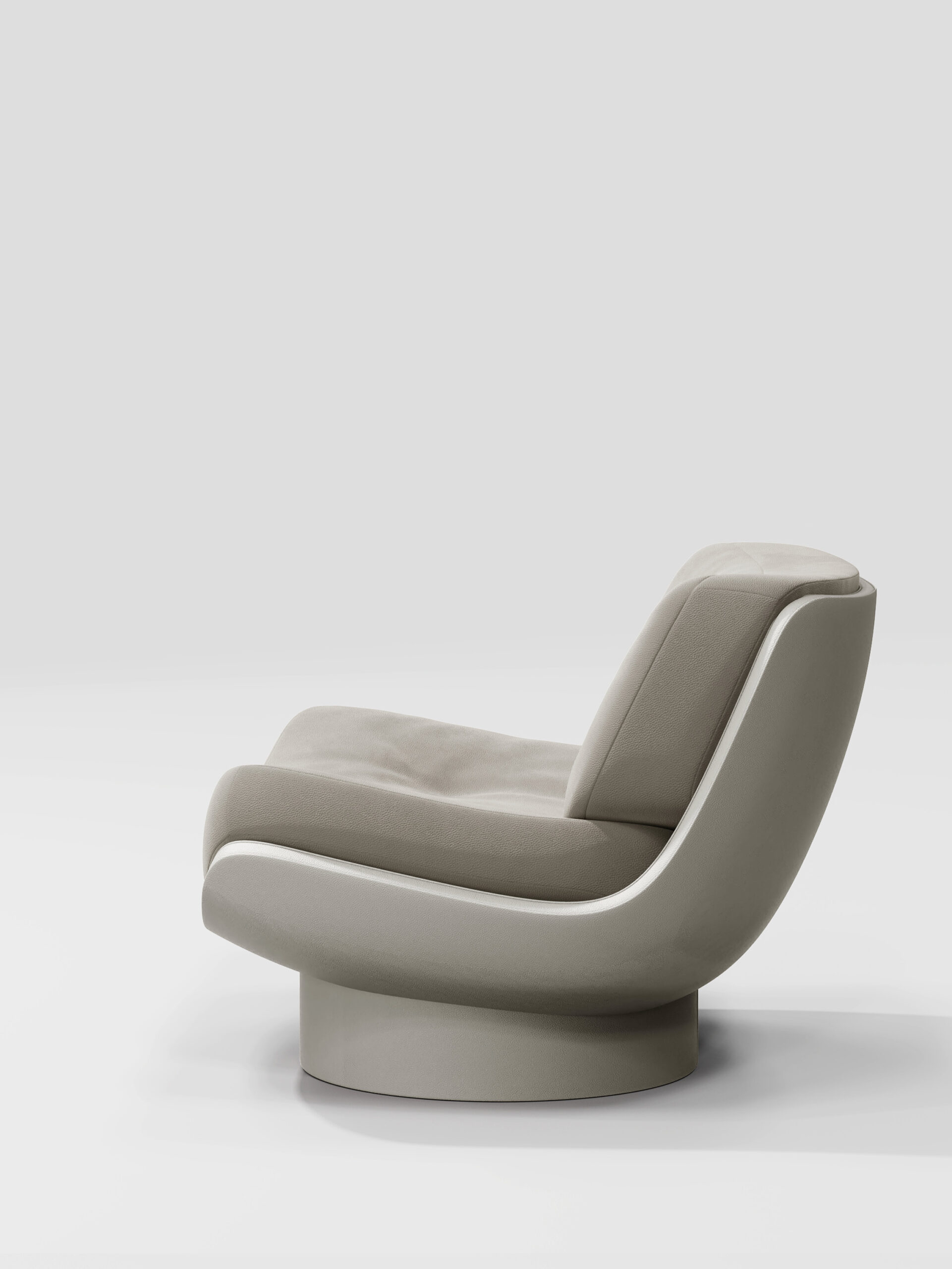 The Lalea lounge chair is somewhere you don’t want to leave, an island that is both isolated and comfortable. Resembling a floating cloud, Lalea lounge chair is designed to feel exactly like that. Lalea consists of two perfectly complementing parts, the first an intricately detailed leather shell, within it, a soft and bulky set of cushions giving maximum comfort. The contrast between the taught leather of the shell and the loose billowing fabric of the cushions is further highlighted by the possibility to customise both parts in a number of leathers, suedes and fabrics both matching and contrasting.