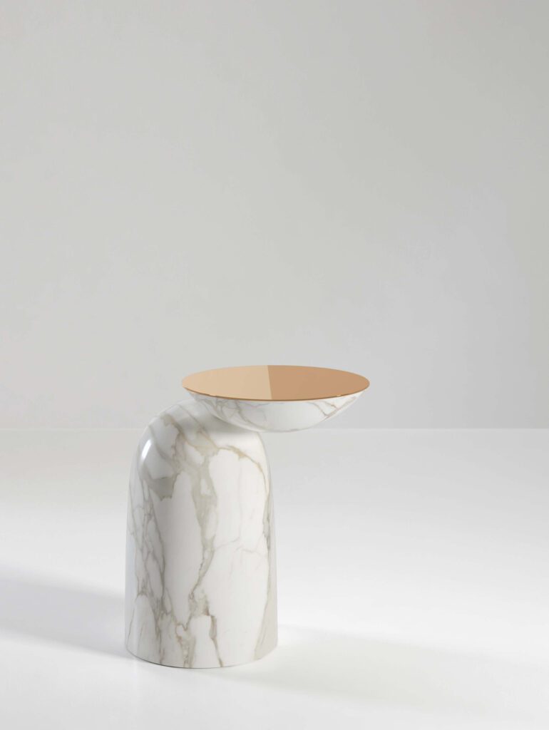 Orbitae side table is a piece designed to highlight the beauty of natural stones. Each marble top is supported by a simple pedestal designed to disappear. Each marble top contains a special detail giving depth and highlighting the complex patterns within the stone. Orbitae is available in a number of metal finishes as well as […]