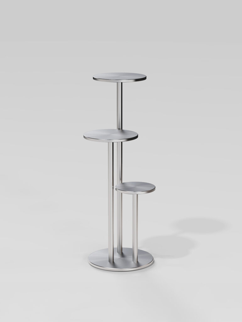 The 3 kings of Orion’s belt: offering 3 different heights and sizes of brushed metal disc, the combination of which provides a practical and sculptural side table. Orion is available in a number of metal finishes including satin and polished options.